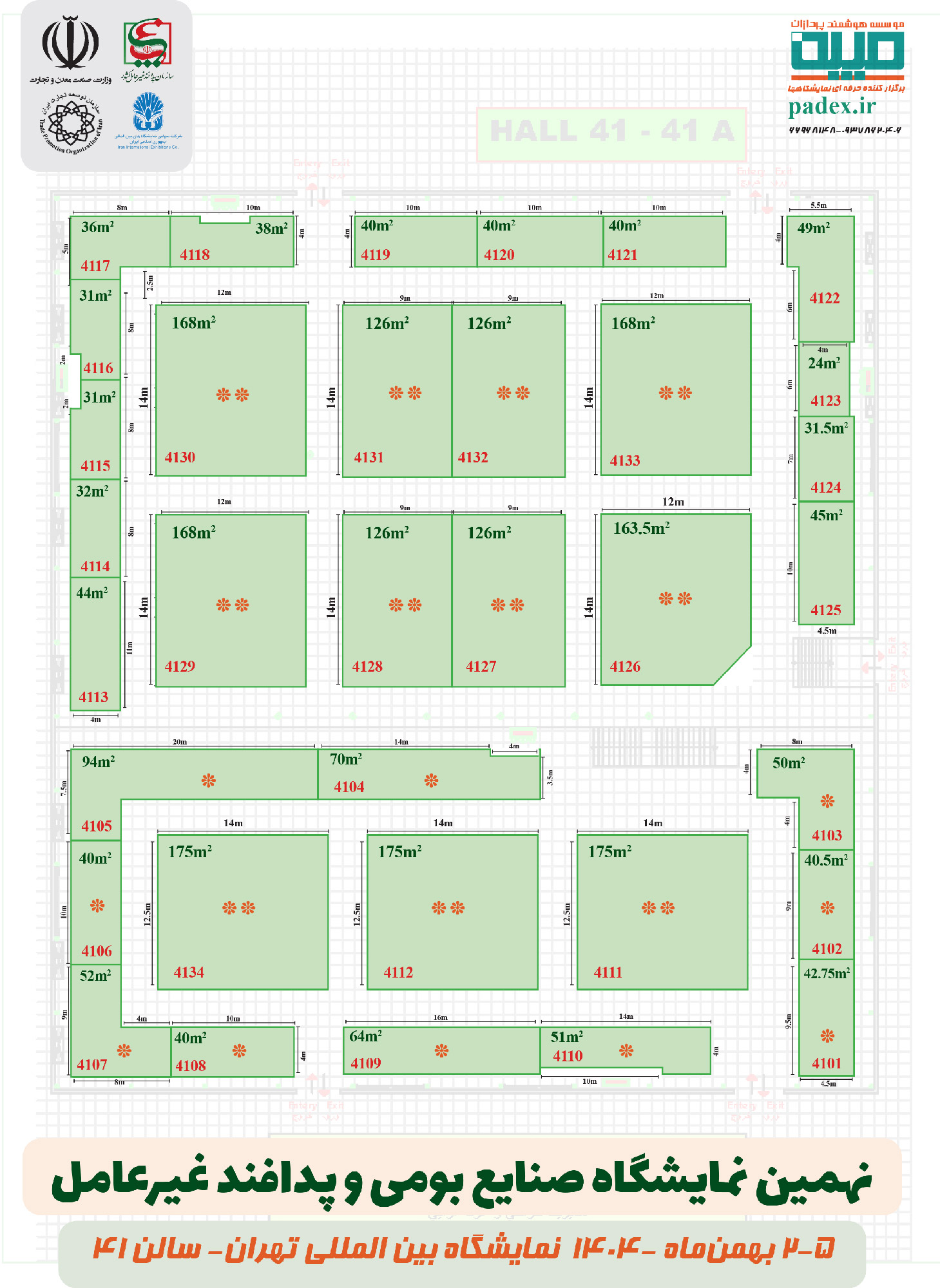 غرفههایی که در سالن 41 واگذار شده اند:
